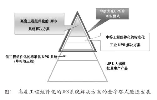 同时,这种高度工程组件化提高可靠性和适用性的方法,也顺应了工业4.0的浪潮[工业四代(Industry4.0)是指利用物联信息系统(Cyber-PhysicalSystem,简称CPS)]将生产中的供应、制造及销售信息的数据化、智慧化,最后达到快速、有效、个人化的产品供应。图1给出了高度工程组件化的UPS系统解决方案的金字塔式的递进发展情况。